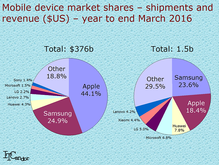 Table – Mobile device market shares ($USb) – year to end March 2015 and 2016